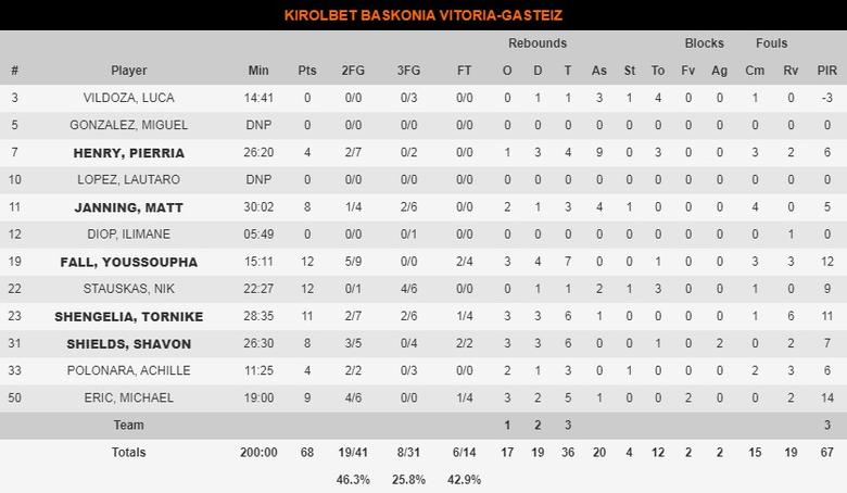 Si no se mete no se puede ganar. En baloncesto hay tópicos muy obvios que a veces son la pura realidad y la clave. El acierto de Kirolbet Baskonia tanto en tiros de dos como en el tiro libre fue muy escaso como para pretender llevarse un partido en el OAKA. En el primer cuarto dominaron el rebote, especialmente el ofensivo con 8, y se fueron por debajo en el marcador por su 7 de 21 en tiros de campo y su 1 de 6 en libres. En cuanto dejó de controlar el rebote y con el desánimo que daban sus fallos en ataque, Panathinaikos se fue con facilidad en el marcador. Los de Perasovic acabaron con un desastroso 27 de 72 en tiros de campo y un 6 de 14 en libres.