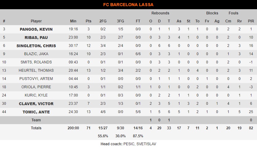 El balance defensivo del FC Barcelona Lassa, desastroso. Cuando el conjunto de Pesic apretaba en defensa y jugaba bajo la dirección de Thomas Heurtel, consiguieron sus primeras ventajas en el marcador. Especialmente en el último tramo del segundo cuarto, la principal fuente de anotación del Bayern procedía de canastas en transición, aprovechando una debilidad de los visitantes, el balance defensivo. No volvían a tiempo tras los ataques, y permitió al conjunto alemán reducir distancias cuando se iban del marcador.