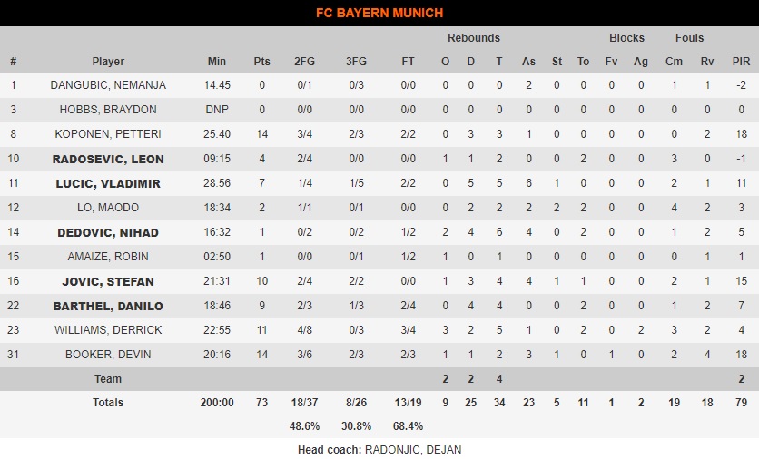 Petteri Koponen, héroe y verdugo. Con 14 puntos, y una canasta sobre la bocina que culminó la remontada, ejecutó a su ex- equipo y mantiene con vida al conjunto bávaro. Premio a una gran defensa final y no perder el pulso del partido.