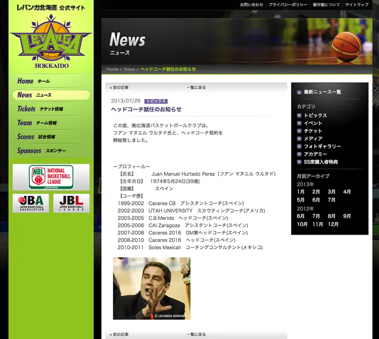Pues recién llegado de su Campus de Jaraiz de la Vera, en su Cáceres natal, más conocido como Campus Xaraiz; y tras un año en blanco en cuanto a entrenador profesional en la élite, ya que la temporada 2012-13 ha sido el Seleccionador Extremeño Infantil así como el Director de las Escuelas Deportivas del Colegio Sagrado Corazón de Cáceres, volveremos a verle en lo más alto ya que se acaba de hacer oficial su fichaje por el equipo japones del Levanga Hokkaido, de la máxima categoría nipona como así hacía oficial la web del club.
