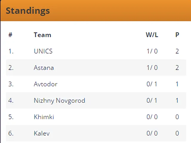 - El segundo encuentro disputado enfrentó al Astana y al Avtodor de Saratov. Los kazajos olvidaron pronto lo sucedido en la pasada campaña y de la mano de su nuevo entrenador, Ilias Papatheodorou,logró la primera victoria por 83 a 78. En este primer encuentro, exhibición de Ian Miller, que anotó 32 puntos, bien secundado por Ousmane Krubally, quien sumó 8 puntos y 9 rebotes para 22 de valoración