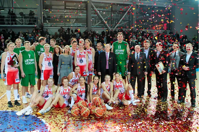 Todos sabemos que Lituania es tierra de baloncesto, de 3×3, de pachangas por doquier, de auténtica locura por la pelota naranja, pero lo que hemos visto este fin de semana nos ha sorprendido. ¿Qué hacen juntos en el mismo equipo Arvydas Sabonis, Ramunas Siskauskas y Stombergas?. Pues perder contra un equipo de chicas, eso sí, las mejores de la Liga Profesional Lituana (LMKL). El encuentro fue el acto de cierre del fin de semana de las estrellas femenino que se ha disputado el sábado y domingo en Prienai (ciudad de Rudupis) y que acabó con la victoria de las chicas por 53-52. Desde luego eso fue lo de menos, lo más resultón ha sido a ver a jugadores lituanos de diferentes generaciones sobre la pista en un formato que bien podría ser un partido de dobles mixtos del Open de Australia. ¿Se podría hacer eso en la Liga Endesa?