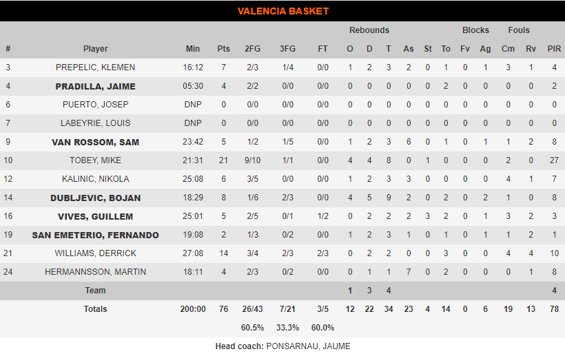 Mike Tobey fue el gran artifice de la victoria de hoy, con un trabajo que vino complementado por otro hombre alto como es Derrick Williams, en clara tendencia ascendente con su nuevo equipo desde hace unas semanas. Y es que ambos vieron esa clara debilidad de los turcos, quienes apenas pudieron contar con Tibor Pleiss, que con molestias se fue al banquillo habiendo jugado solo tres minutos, y con Dunston viéndose superado por el pívot estadounidense de Valencia Basket. Pero no solo fue por los puntos, sino que, además, el conjunto local fue claro dominador del rebote, sobre ofensivo, con Tobey y Dubljevic como los líderes en este aspecto.