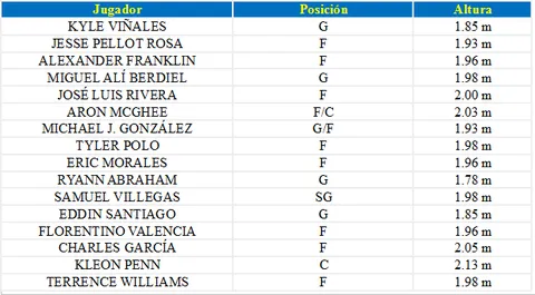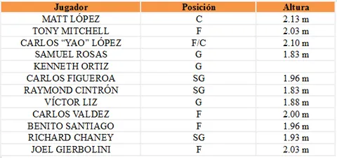 Del quinteto dirigido por Allans Colón, sobresale también la figura del novato Alex Abreu, que viene de una exitosa carrera en la NCAA, y que se espera tenga un rol importante junto a Jezreel de Jesús. Esperemos que la inyección de experiencia al equipo no trastoque su química y puedan tener aspiraciones a clasificar a la postemporada.