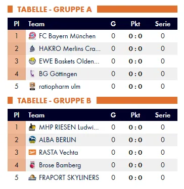 – Ratiopharm Ulm: equipo con viejos conocidos de la ACB como su entrenador Jaka Lakovic o el ex jugador de Obradoiro, Andreas Obst, tiene una buena oportunidad para una temporada en la que iban décimos en la liga. No tienen mal balance con el grupo, ya que ganaron en dos ocasiones a Göttingen, a Oldenburg, pero perdieron con HAKRO Merlins y Bayern München.