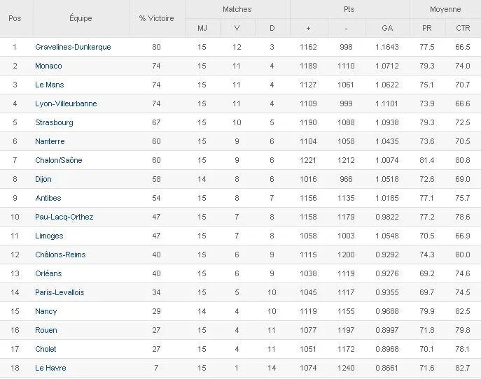 | PAU-LACQ-ORTHEZ – CHALON/SAÔNE | 84-76 | |