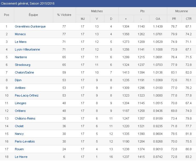 | GRAVELINES-DUNKERQUE – LYON-VILLEURBANNE | 79-63 | |