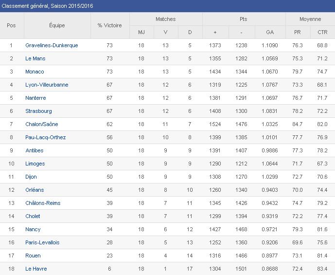 | LIMOGES – LE HAVRE | 86-67 | |