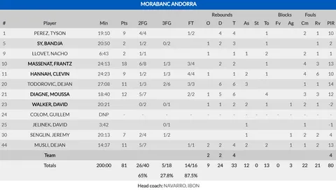 Bronca de Ibon Navarro, puntos de Massenat y Diagne y Morabanc recuperaba la desventaja (31-31). Diagne se propuso dar espectáculo en el segundo cuarto y dejó un bonito alley-opp, asistido por Senglin. El espectáculo andorrano era contestado por el tremendo acierto griego desde el 6,75, liderados por Lypovyy y Chase Fieler, que anotó 27 de los 39 puntos desde el triple. Todorovic ponía el 43-39 al descanso con una canasta de dos.
