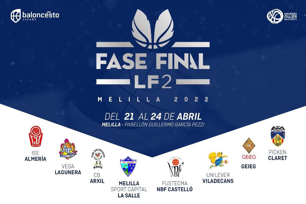 El próximo jueves da inicio el torneo final de LF2 con dos billetes en juego a LF Challenge. La fase final se disputará en el Pabellóm Guillermo García Pezzi de Melilla, con dos grupos de cuatro equipos. El grupo A estará formado por ISE Costa Almería, Unilever Viladecans, Picken Claret y MelillaSport Capital La Salle; el grupo B estará el Fustecma NBF Castelló, VegaLagunera Toyota Adareva, CB Arxil y GEIEG de Girona. El domingo se disputarán las dos semifinales que saldrán los dos equipos campeones.