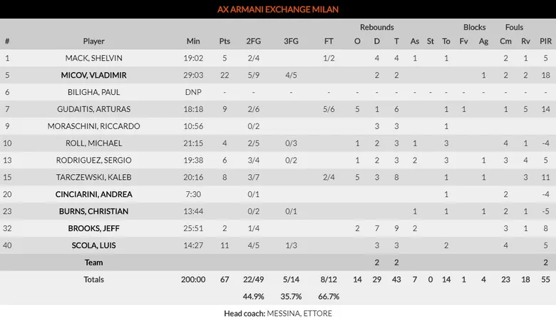 Ettore Messina consiguió sembrar dudas al Real Madrid durante la primera parte. Como mencionamos en el resumen, Pablo Laso y Ettore Messina llevaron a cabo un duelo estratégico en la primera parte. El técnico italiano quiso llevar la batalla a su terreno, al ámbito físico. En defensa, buscó cerrar espacios, impedir el movimiento fácil de balón por parte del conjunto blanco, y evitar ocasiones cómodas para su rival. En ataque, su 1/3 en triples y 16/25 en tiros de dos refleja que fue predilecto por el juego físico, buscar las ventajas en el uno contra uno, con Vladimir Micov (13 puntos al descanso), como líder en el apartado.