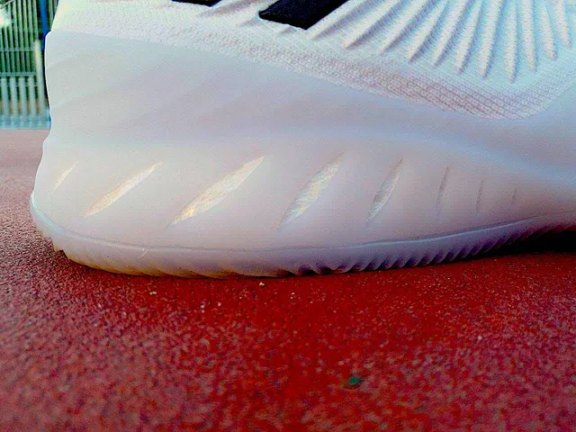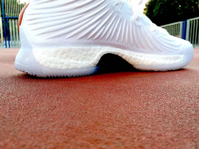 En la suela se puede apreciar el otro refuerzo en forma de «ocho» que une la suela y la mediasuela, que ya fue utilizado en las Harden Vol.1, y que facilita la transición entre la parte trasera y la delantera de la zapatilla. Gracias a este refuerzo, la zapatilla no se deforma durante el juego y el Boost recupera rápidamente su forma tras cada zancada y cada aterrizaje. La pisada con las Crazy Explosive es muy mullida, pero es a la hora de correr cuando se advierte su verdadero potencial, ya que el Boost proporciona un retorno de energía formidable que ayuda en los impulsos y en los movimientos explosivos.