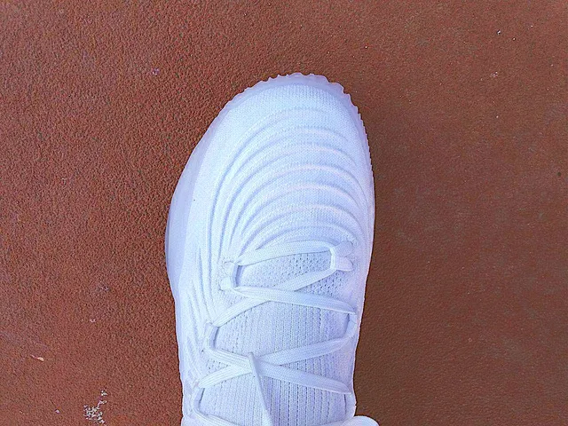 La cordada tiene cinco puntos de sujeción a cada lado, uno más que en el modelo anterior, aunque la lazada sigue siendo bastante amplia. Al apretar los cordones se nota como los puntos de sujeción tiran del Primeknit, haciendo que se pegue todavía más al pie. Servidor tiene los pies algo estrechos, y debo decir que ha bastado con apretar la cordada para que desaparezca toda sensación de que el pie «baile» en el interior de las zapatillas, lo que en mi caso no deja de ser un punto bastante positivo.