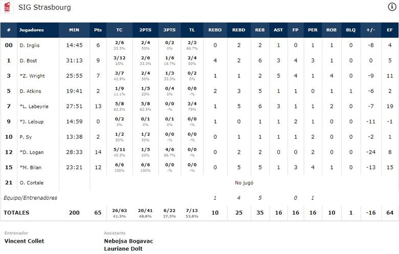 - Los de Estrasburgo, la nada absoluta. El despliegue del cuadro de Vincent Collet rozó el bochorno, sobre todo antes del descanso. Uno de los equipos punteros de esta competición no dio el nivel mínimo en este partido, algo que por presupuesto se le debe exigir. Suena complicado hilar esto con un equipo que estuvo en la Euroliga hace sólo dos temporadas. Un 3/9 en tiros libres cuando llegaba el 3º cuarto es uno de los ejemplos de cómo el equipo no apareció por ningún lado. La defensa casi fue lo peor, ya que concedieron innumerables oportunidades a Estudiantes para realizar su juego habitual paso por paso, sin oposición.