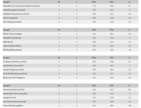 Se enfrentaban en el Cido Arena los dos equipos que siguen la estela del Gran Canaria. Los dos llegaban con un balance de 3-3 y este duelo era importante para lograr una mejor situación para acceder al Top 16. El encuentro comenzaba con igualdad, pero en el segundo cuarto los croatas abrían distancias en el marcador hasta llegar al descanso con un 32-39 en el luminoso. Del minuto 22 al 26 llegó la máxima distancia que fue de 12 puntos. Desde ese momento hasta el final del partido, los locales fueron recortando pero se les hizo tarde y no lograron dar la vuelta al marcador. En los lituanos destacaron Ben Madgen con 15 puntos y 9 rebotes, y el incombustible Ksistof Lavrinovic con 16 puntos. Por parte visitante lo hizo Marko Tomas con 23 puntos.