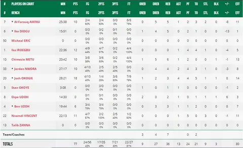 2. Diogu y Udoh, desaparecidos; Aminu, intermitente. Las teóricas estrellas de esta selección no aparecieron en ningún momento. Solo Aminu dejó algún destello de calidad con alguna penetración en el 1vs1, pero el resto del partido estuvo discreto: 10 puntos y 5 rebotes para un jugador que debió asumir más responsabilidades en los instantes finales. En cuanto a los interiores, Diogu no anotó, Michael Eric ni jugó y Udoh solo lanzó una vez a canasta. En ningún momento se apostó por el juego interior, una de las principales bazas de los africanos.