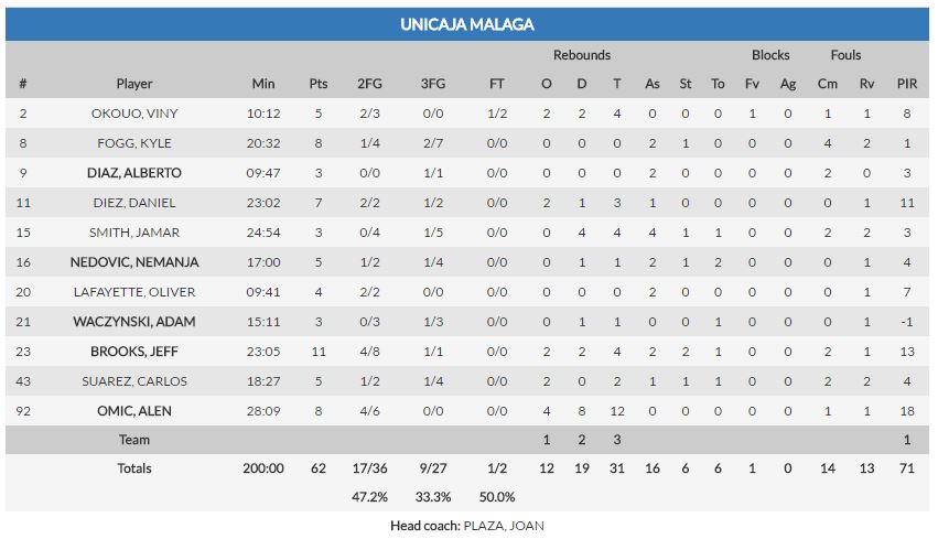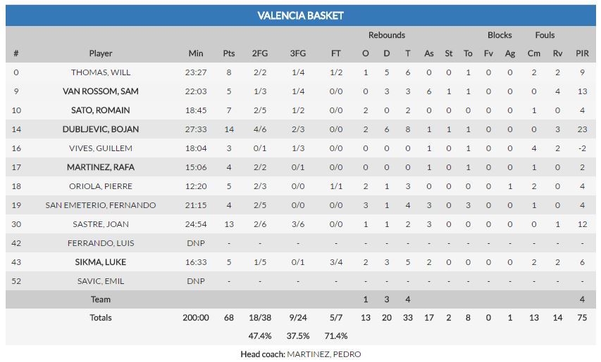 Dubljevic pone la sangre fría. Llegaba el momento clave del encuentro, a falta de cinco minutos por jugar, y Unicaja subía una marcha para tratar de acercarse en el marcador. Valencia cometía fallos inexplicables, que le impedían romper el partido, pero los de Joan Plaza no conseguían conectar de nuevo. Dubljevic anotaba un triple, que rápidamente encontraba respuesta en Kyle Fogg (65-60). La tensión era tan palpable que se mascaba en el enfervorecido calor de La Fonteta, y en ese recargado ambiente era, nuevamente, Bojan Dubljevic quien, con una sangre fría tremenda, anotaba un triple para poner la sentencia al partido (68-62).