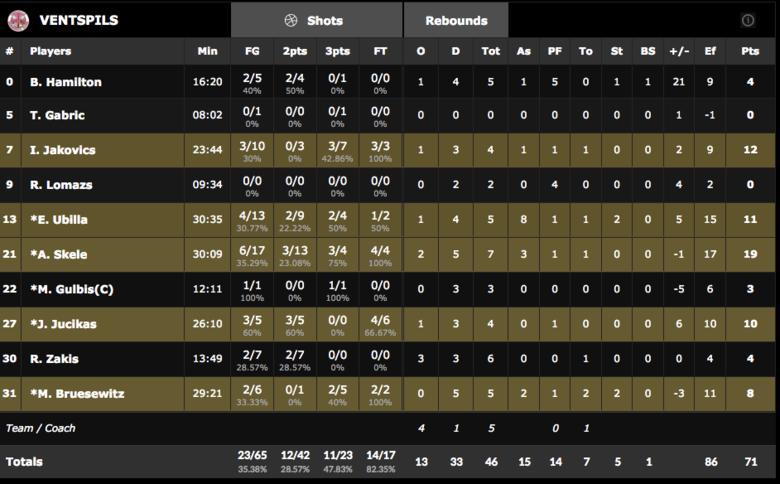 MVPonitka. La retirada del jugador polaco fue una baja difícil de asumir para los locales, puesto que perdían a una referencia en ataque (11 puntos de meida) y a un gran reboteador defensivo para su altura; con casi 5 capturas por partido. Sumado a su habilidad de atacar las espaldas y la línea de fondo, pues se pierden muchas opciones en ataque y Mike Tobey se encontraba muy solo hoy en la zona.