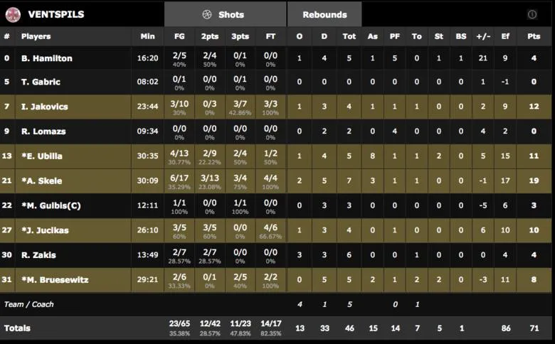 Partido en el barro. Es la única manera que tenía el Ventspils de llevarse el choque, y vaya si lo hicieron. Partidos a tanteos bajos, malos porcentajes y donde cada canasta o rebote resulta vital en el marcador final. Incluso algo que podría parecer un hándicap negativo para los visitantes, el largo viaje para trasladarse a Tenerife, no les afectó demasiado.