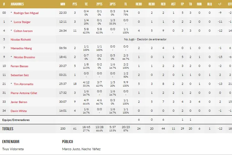 Tras ese horrible primer cuarto, los de Vidorreta comenzaron a jugar surtiendo de balones a Iverson y Abromaitis y apoyándose en la intendencia y generación de juego de Beirán, pero la Virtus respondían a cada golpe. Kevin Punter lideraba a los suyos en ataque, muy bien acompañado por Amath M’Baye y con Tony Taylor bien en la dirección. Los italianos se fueron al descanso habiendo aumentado la ventaja en dos puntos (38-24). Además los canarios seguían negados en el triple, consiguiendo el primero tras quince intentos errados a falta de poco más de un minuto para el descanso.