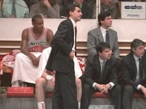 La temporada 1989-90 Sergio Scariolo se hacía cargo como primer entrenador de Scavolini Pésaro, tras haber sido asistente de Giancarlo Sacco y Valerio Bianchini (con el que ya había sido campeón de Italia la temporada 87-88). Tras una fase regular en la que el equipo había logrado ser primero con 22 victorias y 8 derrotas “el equipo llegaba de descansar casi dos semanas ya que en octavos de final los primeros clasificados descansaban. Nos tocó en suerte Il Messaggero de Roma con Danny Ferry y Brian Shaw [que había eliminado a su rival en cuartos Reggio Emilia de Joe Bryant, padre de Kobe Bryant]. Nos venció en el primer partido de cuartos de final (83-92) colocándonos en una situación complicada mentalmente después de haber sido primeros en liga regular. El propietario de Scavolini vino en persona después del partido y viéndonos preocupados nos dijo que sabía que íbamos a ganar el segundo partido en Roma y el tercero en Pésaro y así fue. Nos mostró seguridad, convicción, es un recuerdo imborrable solo un minuto después de producirse el resultado. En la derrota cuenta mucho más como lo digieres y con cuanta velocidad lo haces.” Caserta en semifinales y Varese en la final serían los dos rivales hasta alzarse con el título del Scudetto.