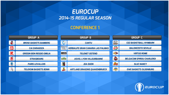 Los equipos españoles pertenecen a la primera conferencia. A priori, el grupo A, donde ha terminado el CAI ZARAGOZA, será el más complicado. Le espera el Brose Baskets Bamberg que se quedara a una victoria de alcanzar el Top16 de la Euroliga o discutirle al título al Bayern Munich en su quinta final consecutiva de la liga alemana; el ambicioso proyecto del Paris Levallois que ya se hizo notar en la copa y playoffs franceses, el potente Telekom Baskets Bonn, el Grissin Bon Reggio Emilia campeón de la Eurochallenge con Rimantas Kaukenas al frente y refuerzos de la talla de Darjus Lavrinovic y el Strasbourg. Equipos con nombre y/o recorrido en competiciones europeas.