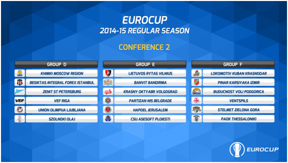 Esta mañana se ha celebrado el sorteo que decide los grupos de la primera fase de la Eurocup. Siguiendo el formato de las dos divisiones que separan el continente en este y oeste, se establecen seis grupos (tres por conferencia) de seis equipos. En esta primera fase se disputarán diez partidos para decidir a los cuatro primeros, que pasan a la Eurocup Last 32. Los 24 equipos clasificados pasarán a formar entonces ocho grupos donde ya coincidirán con ocho equipos eliminados de la Euroliga y jugarán entre sí seis partidos para decidir a los dos primeros de cada tabla, que pasarán a los octavos de final.