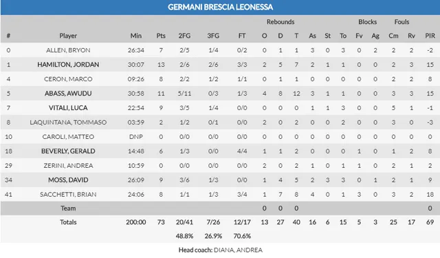 Y cuando Andorra parecía que lo tenía controlado, pues no, Brescia no se rendía y acortaba distancias conforme pasaba el último cuarto. El susto metieron en el cuerpo de los de Ibon Navarro, que veían como su distancia no les era suficiente. A menos de diez puntos a falta de minutos para el final, y la falta de acierto en algunos tiros evitó que los italianos dieran la vuelta al partido, y Andorra se llevó la victoria, aunque solo por seis puntos (73-79) tras haber llegado a vencer por más de veinte puntos.