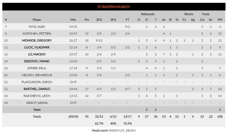 Una estrella y mucho subsidiario: con lumbre de gran trayectoria se venía Greg Monroe a Europa para completar una Euroliga de escándalo. Un zurdo con toda la clase para construir el proyecto futbolero del Bayern. Todo lo normal, lo lógico. 18 puntos para ser el jugador del partido, después de cuatro jornadas. Lo que no tiene tanto de universal ha sido el papel de sus compañeros secundarios. Los puntos de Koponen, de Radosevic, de Lo…sorpresas de una partida en la que no estaban ni para ser casi nombrados. Casi todo el que estaba vestido hoy de rojo anotó en la noche de miércoles alemana. Ocho jugadores con al menos ocho puntos de anotación, para una estrella y mucho, pero que mucho subsidiario.