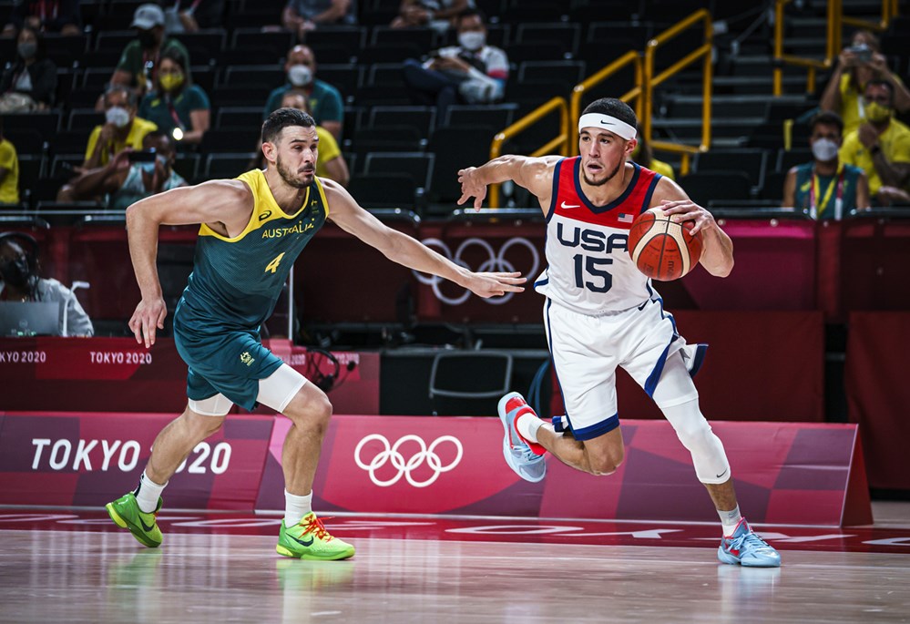 En la segunda mitad se jugó un partido totalmente diferente ya que fueron los estadounidenses los que impusieron su ritmo en todo momento y, de este modo, lograban ponerse con 9 puntos de ventaja, 54-45, tras un parcial de 12-0 de salida, guiados por Jrue Holiday y Kevin Durant. Tras ello, los oceánicos intentarían reducir de nuevo la ventaja, pero un acertadísimo Devin Booker lo impediría, al que se le añadiría Zach LaVine en el final de período para poner el marcador en 74-55.