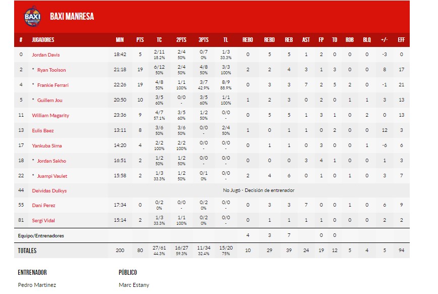 3. Los bases. Qué importante es tener una buena dirección de juego. BAXI Manresa lo tiene de sobra, Dani Pérez y Frankie Ferrari. Frankie Ferrai y Dani Pérez. Si tienen que anotar lo hacen, pero sobre todo dirigen. 14 asistencias entre ambos. El base catalán no anotó, pero demostró que el baloncesto no es solo meter puntos, es algo más.