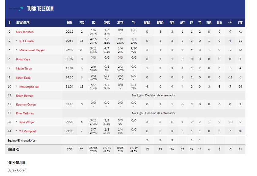 El paso por vestuarios le sentó bien a BAXI Manresa. Comenzaba enchufado Guillem Jou con un triple y un 3+1 consecutivo que metía al Nou Congost en el partido. Sin embargo, Ferrari y Davis seguían desacertados desde el perímetro. Fall mantenía a los suyos en la pelea. Para alegría local, Campbell cometía su 3ª falta personal. BAXI Manresa no conseguía darle la vuelta al partido y a ello no ayudaba la antideportiva señalada a Davis (45-49, min.25). Pedro Martínez movía el banquillo buscando la inspiración de alguno de sus pupilos. Y la encontró. Toolson volvió a ser el que todos conocemos y comenzó a meter sus tiros. Por si fuera poco, el rebote ofensivo les concedía nuevas opciones. Turk Telekom perdía el norte. Fall ya no campaba a sus anchas y sus ataques se convertían en un martirio comiéndose posesiones y exprimiéndolas al máximo. Sus buenos porcentajes en el triple disminuían al verse obligados a lanzar tiros forzados. BAXI Manresa olía sangre y Báez comenzó a percutir la zona y a sacar faltas. Tan solo Baygul achicaba agua para los suyos y tras un triple final mitigaba la rebelión (55-54, min.30).