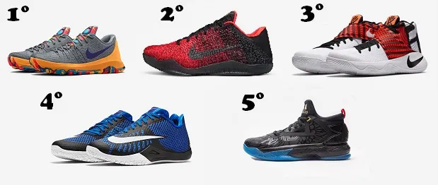 De nuevo volvemos a encontrar las zapatillas de Kevin Durant en primera posición, nuestros amigos de Jugones Club nos destacan además: “Ha revolucionado el mercado por su comodidad, incluso se ha convertido en un referente para gente que la usa como calzado de calle. Es muy demandado entre el sector femenino.”