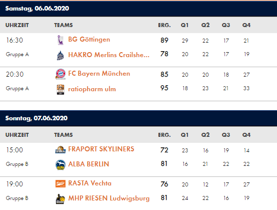 Este sábado volvió el baloncesto en Alemania entre estrictas medidas de seguridad y sin público en el pabellón Audi Dome de Múnich. Un torneo en el que se miran otras ligas como la ACB para la vuelta. Y Lo hizo con la sorpresa de la derrota del gran favorito y defensor del título, Bayern Múnich ante el Ulm de Jaka Lakovic. ALBA Berlín logró remontar bajo el liderazgo de Peyton Siva, de vuelta tras una larga lesión.