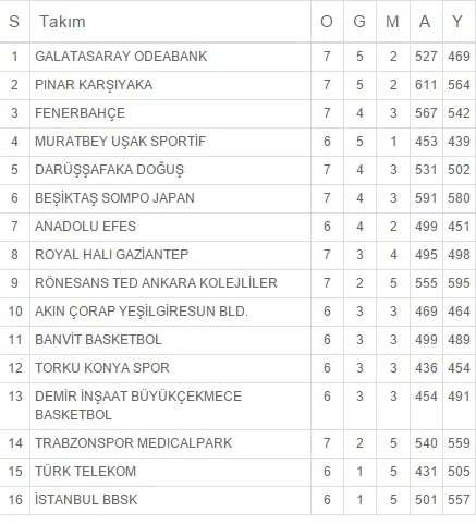 Con la derrota de Pinar Karsiyaka, el club de Izmir ha sido superado en la cabecera de la clasificación por el sorprendente Usak, que derrotó esta jornada al Demir BB por 79-70 con Paul Harris sumando 21 puntos y 10 rebotes. En el Demir, Michael Roll fue el hombre más destacado con 19 puntos y 5 rebotes.