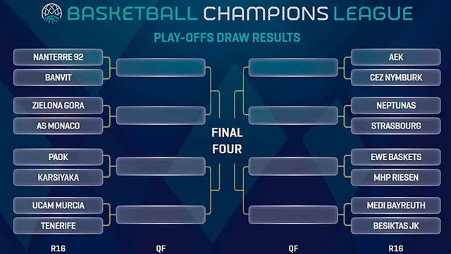 Habrá duelo español en los octavos de final de la Basketball Champions League. Iberostar Tenerife y UCAM Murcia se cruzarán en la primera eliminatoria de los Playoff. La eliminatoria se disputará a ida y vuelta el 6 y 14 de marzo, disputándose el primer partido en el Palacio de los Deportes de Murcia y el encuentro de vuelta en el Santiago Martín.