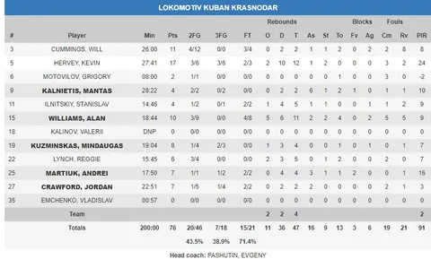 Durante todo el encuentro, el Lokomotiv Kuban demostró un juego sólido, correoso y bastante grupal, pero a la hora de destacar algo tenemos que hacer referencia a los puestos interiores. Kevin Hervey y Alan Williams resultaron claves tanto en el aspecto atacante como en el aspecto defensivo, sobretodo en el reboteador, consiguiendo entre los dos 23 de los 47 capturados por los rusos. Hervey acabó el partido con 17 puntos y 12 rebotes, mientras que Alan Williams hizo otro doble doble con 10 puntos y 11 rebotes.