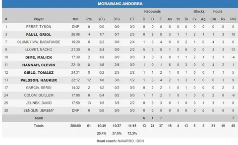 Cuando vemos jugar al Morabanc Andorra vemos un estilo de juego con transicciones rápidas y dónde el acierto exterior tiene un gran peso. Clevin Hannah y Jeremy Senglin suelen ser los principales pilares en ataque del Morabanc Andorra, pero ante la poca participación del primero y la incomparecencia del segundo, otros dos jugadores tuvieron que dar un paso adelante. Esta vez los dos propulsores del juego exterior fueron Haukur Palsson y David Jelinek, este último siendo importante saliendo desde el banquillo. Quitando la aportación de estos dos jugadores, el acierto desde el triple no es muy destacable, errando varios de ellos muy claros.
