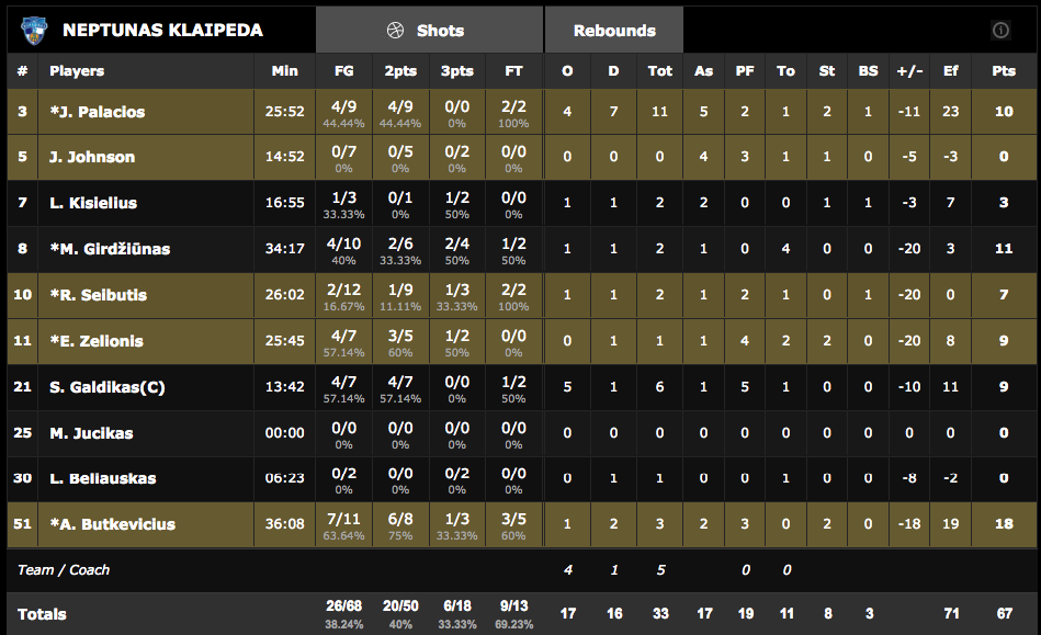Comenzaba el partido con un ritmo muy alto, puesto que ambos equipos conjuntos estaban empatados a 5 victorias y 1 derrota en el grupo, y ninguno quería alejarse del liderato. El primer cuarto parecía que sería igual a otros partidos de la BCL donde los aurinegros rompían desde el inicio el partido con dos triples de San Miguel y Abromaitis más una canasta de Fran Vázquez, pero los visitantes plantaron cara para irse cuatro arriba al final del cuarto. El segundo cuarto seguiría con la misma historia, ninguno de los dos contrincantes se marchaba más de los 5 puntos, hasta que a finales de cuarto un triple de Ponitka y una bandeja de Rosco Allen ponía la máxima del +10 al descanso. Tras el intermedio, los aurinegros salieron muy fuertes y rompieron el partido yéndose por encima de la veintena de ventaja, y partir de aquí solo quedaba aguantar algún arreón del Neptunas pero no llegó a ser suficiente.