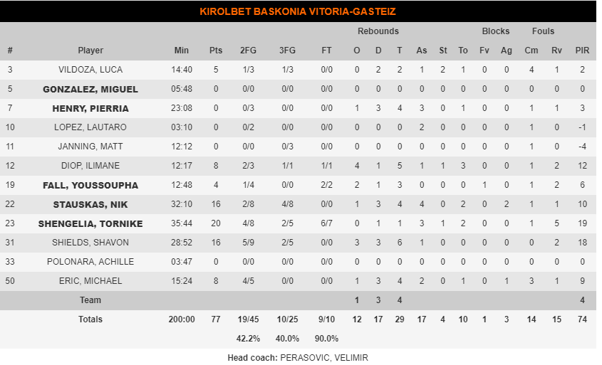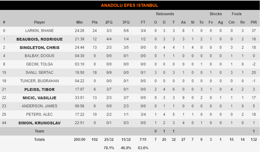 Los números hablaron por sí solos: Un proverbio latín dice lo siguiente; ‘verba volant scripta manent’. Yo, un humilde cronista, podría dejaros aquí mi opinión del partido, pero prefiero redirigiros a las estadísticas del partido, y hacer junto a ustedes un análisis de ellas. 27 asistencias de Efes por 17 de Baskonia, ejemplo de la fluidez y automatismos de un equipo y otro. Al termino de los primeros 30 minutos, 44 créditos de valoración de Baskonia por 100 del conjunto turco. En los primeros 2 cuartos, 5 faltas tan solo cometidas por Baskonia, reflejo de una carencia de intensidad. 6 jugadores de Efes por encima de los 10 puntos, por tan solo 3 de Baskonia. Sinónimo de un equipo coral y otro que se basa en individualidades. 78% de acierto de Efes en tiros de dos, y 47% en tiros de tres. Dejando a un lado el descomunal talento de los turcos, los indicios de que la defensa de Baskonia no ha sido la mejor están ahí.