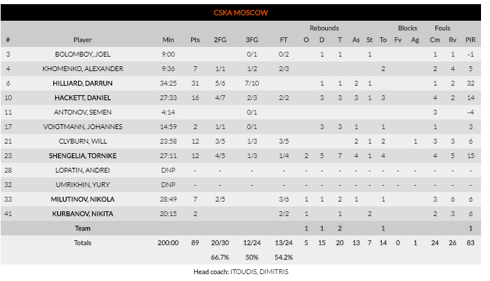 Con pasado Baskonista, equipo gracias al cual Hilliard dio el salto a Europa, precisamente ante su ex-equipo, Hilliard ha consumado la que hasta la fecha ha sido su mejor actuación en la competición continental. Sin compasión, sin miramientos, sin amiguismos, Hilliard ha ejecutado como, cuando y de la manera que quiso al equipo de Ivanovic. 18 puntos llevaba al descanso, y con 31 finalizó. Como si de una ‘Matrioshka’ rusa se tratase, Hilliard iba quitando capas y más capas. Un triple, otro, otro, otro… En algún momento tendrá que parar, ¿no? Que va. Cuando parece que la figurita es lo imposiblemente pequeña como para que esconda otro muñeco dentro, ahí aparece. Un martillo pilón, un péndulo que no paraba de golpear y golpear. 5 de 6 en tiros de dos, y 7 de 10 desde más allá de la línea de triple. ¡Casi nada! Y por si esto fuera poco, con el partido empatado a 82 a falta de 30 segundos, un triplazo de Hilliard ha terminado de dar la puntilla a su ex equipo. Noche para el recuerdo.