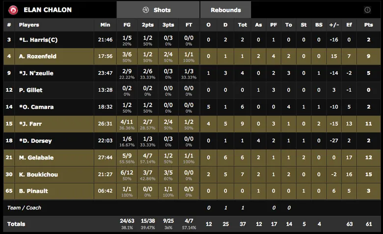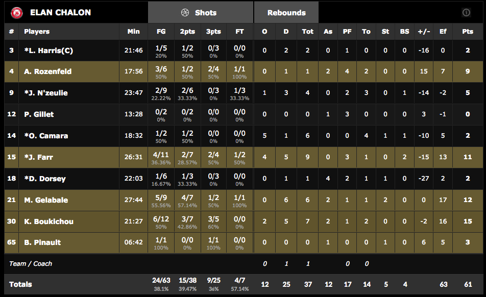 - Un Chalon egoísta. La falta de complicidad entre los jugadores del equipo del centro de Francia se notaba durante todo el partido. En un equipo con algún viejo conocido de la afición española como Gelabale, muchos de los jugadores trataban de hacer la guerra por su cuenta y se vió reflejado en los porcentajes. 38% en tiros de campo. Un porcentaje muy difícil de subsanar para tratar de competir contra cualquier rival.