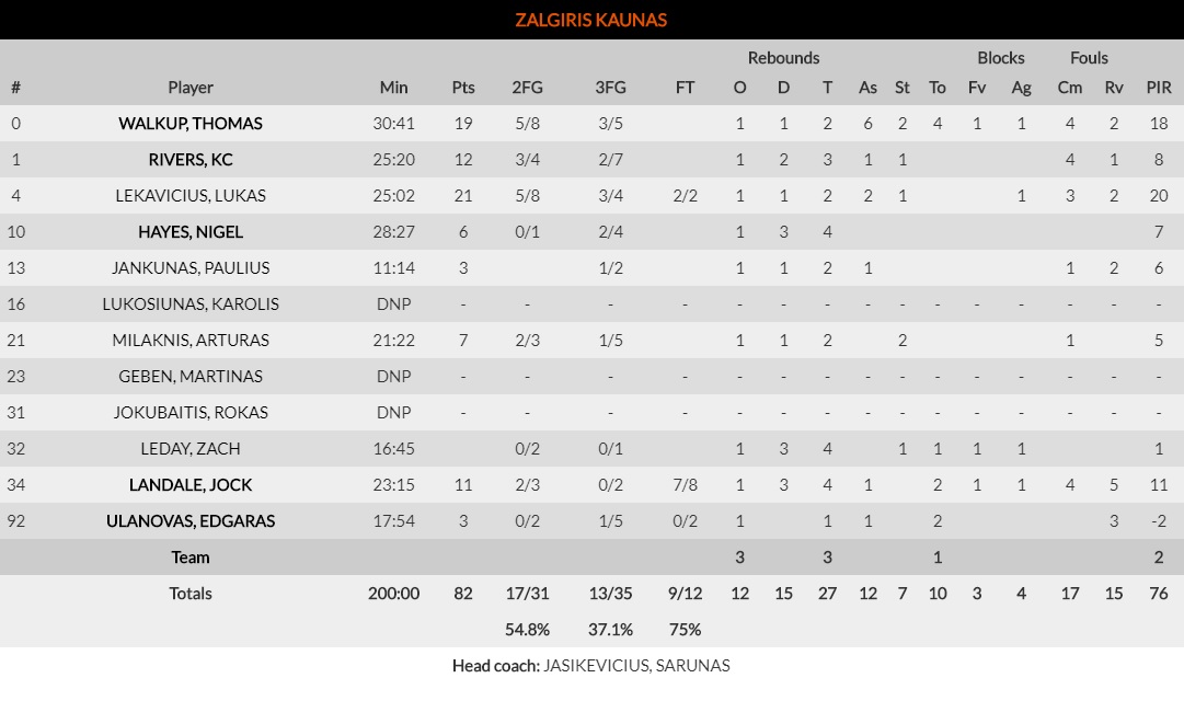 Finalmente, Pablo Laso ordenó una defensa en caja y a Rudy de manera individual con Walkup, para evitar cualquier situación de tiro liberado. Zalgiris Kaunas murió de pie, pero no fue capaz de asaltar el feudo blanco, igualando la mejor marca de victorias de su historia.