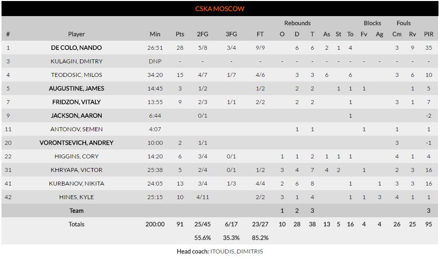 3. EL COMBINADO TEODOSIC-DE COLO: El Real Madrid volvía de vestuarios con la necesidad de apretar las tuercas al combinado ruso, pero los de Itouidis contestaban a cada estrujón blanco con una genialidad de Milos Teodosic (15 puntos, 6 asistencias) o Nando De Colo (28 puntos, 35 de valoración) para mantener las distancias. Entre ambos han conseguido tener el control del ritmo de partido.