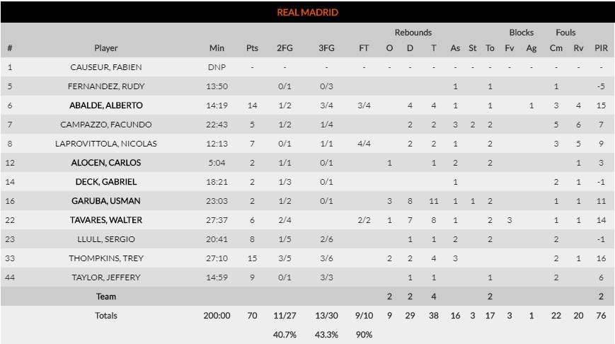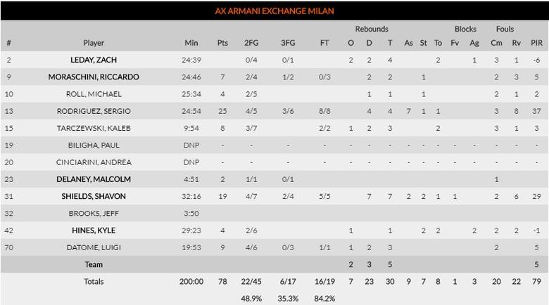 Podríamos hablar de la falta de confianza e ideas del Real Madrid en este inicio o como los inconvenientes como la lesión de Abalde se convierten en insalvables, pero la forma más objetiva de describir la clave de la victoria milanista es que los de Messina sencillamente arrasaron en la segunda parte. El parcial de 47 a 28 es lo que nos dice y el espectacular juego del Chacho y Shields nos lo confirman. Claro que también dentro de las explicaciones está ese mal momento de los blancos, que lo confirma el hecho de que solo Abalde y Thompkins pasaron de la decena en puntos con 14 y 15. Por Armani también fueron solo dos, pero esos dos anotaron 25 y 19.