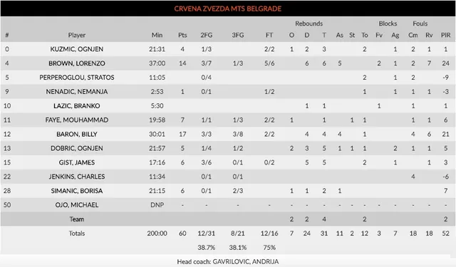 Borisa Simanic, talento por explotar: los focos de Estrella Roja se centrarán en las buenas actuaciones anotadoras de Brown y Baron, pero nosotros nos quedamos con los destellos de calidad del joven jugador serbio. El canterano de 21 años y 2,09 metros de estatura fué el gran revulsivo local en el tercer cuarto con su excelente muñeca, dejando entrever el gran talento que atesora. Un jugador a seguir esta temporada.
