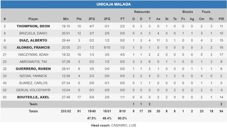 El escolta malagueño mantuvo a su equipo en el partido en los peores instantes. Sus triples permitieron que Unicaja no perdiera la cara al encuentro, convirtiéndose en el máximo anotador del partido (21 puntos) empatado con Nikola Ivanovic. Alonso fue un seguro desde el 6’75, consiguiendo seis triples de diez intentos.