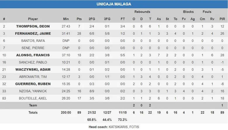 Apostaríamos a que no debió gustar a Fotis Katsikaris la actitud defensiva de su equipo, que permitió a su rival llegar a los 98 puntos. Si en los últimos partidos Unicaja había encajado un promedio menor a los 80 puntos, en contraste con la última etapa de Casimiro, donde la media estaba en torno a los 95 puntos concedidos, en el partido frente a La Roca Team, los jugadores malagueños parecieron mostrar un punto de relajación defensiva impropia de esta etapa iniciada por el entrenador griego. Nuevamente se concedieron canastas fáciles como demuestran los porcentajes de tiro del rival, con casi el 70% (9/13) en triples, y el 61% en tiros de dos puntos. Tampoco es que el equipo monegasco fuese un prodigio defensivo en un partido en el que ambos equipos, conscientes de la escasa relevancia del mismo, jugaron sin presión y con mayor libertad. Pero cuando entraron en el último cuarto, su actitud cambió y se pusieron el mono de trabajo, presionando en defensa. Fue el momento en el que a Unicaja se le apagó la luz (16-29)