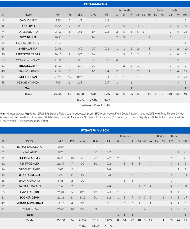 Dura derrota de Unicaja ante el Bayern de Munich en su debut en casa en la Eurocup. El equipo malagueño no supo culminar el trabajo que había realizado en el primer tiempo, y se desinfló completamente en el segundo, donde dio muestras de una preocupante escasez de ideas ante la intensidad defensiva de los de Djordjevic, recurriendo sólo a los lanzamientos exteriores en un día de aciago acierto para su perímetro.