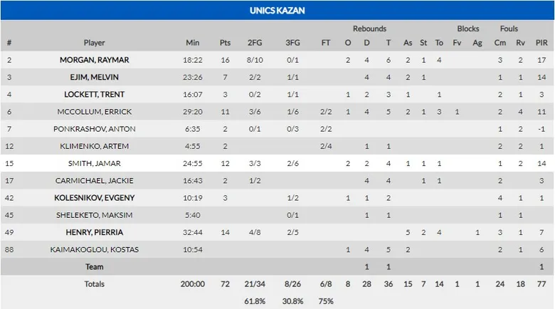 El duelo entre Albicy y Pierria Henry dio grandes momentos pero no fue decisivo. Se enfrentaban el MVP de la primera fase con el que está siendo el mejor base de este Top 16. Andrew Albicy era el cuarto jugador en valoración por 40 minutos de este Top 16, solo superado por tres pívots, y salió dispuesto a demostrarselo a la estrella de Unics. En la primera parte, el francés se fue hasta los 10 puntos, 5 asistencias y 14 de valoración por 5 puntos y 4 pases de canasta de Henry. Pero en el tercer cuarto, Pierria le devolvió la afrenta con 7 puntos y una asistencia mientras que el francés sumó dos asistencias más pero no volvió a anotar. En el último cuarto ninguno de los dos fue importante y fueron otros los que decidieron el partido.